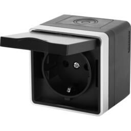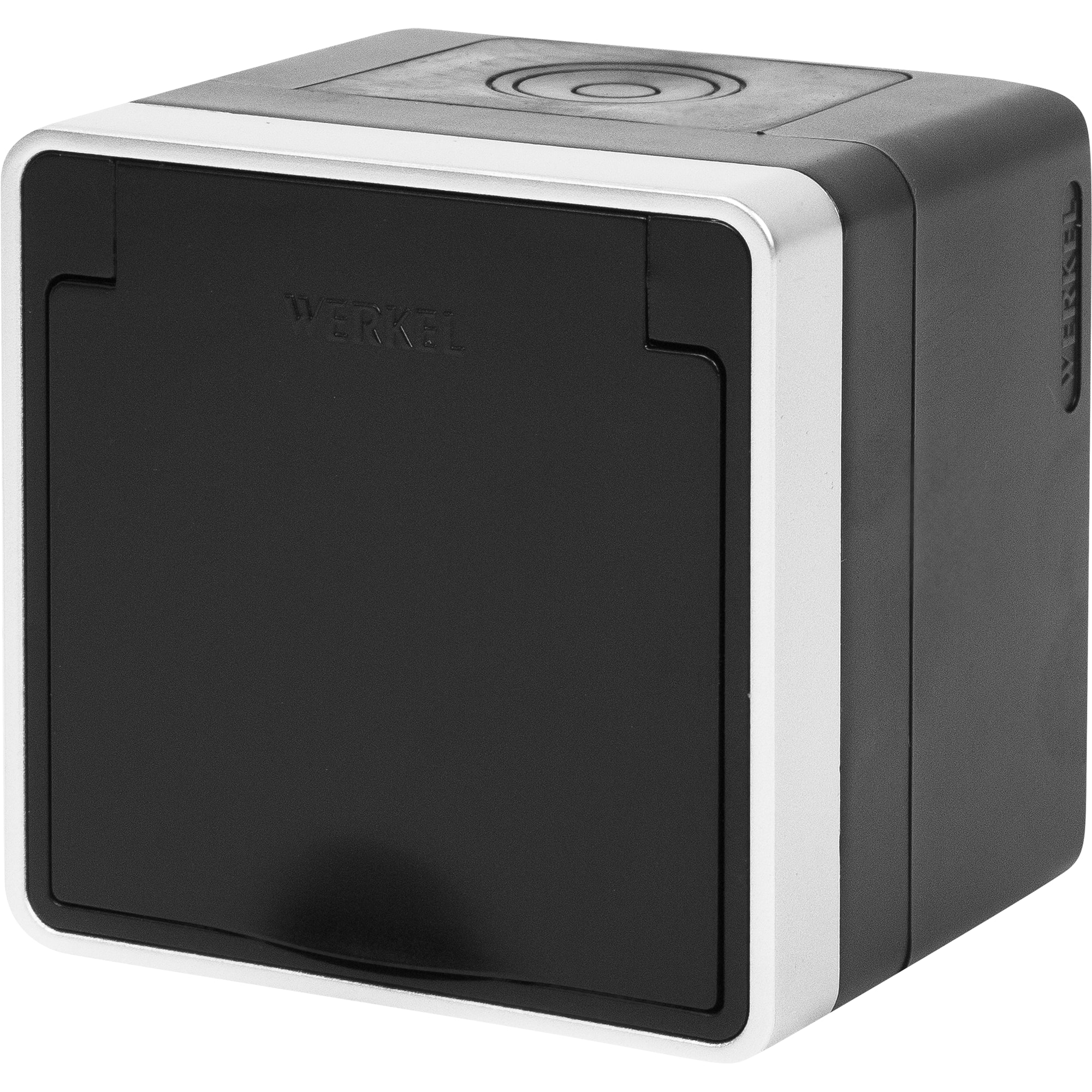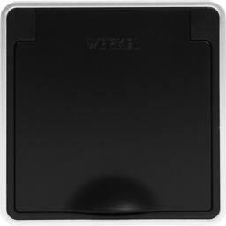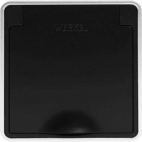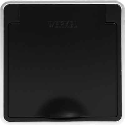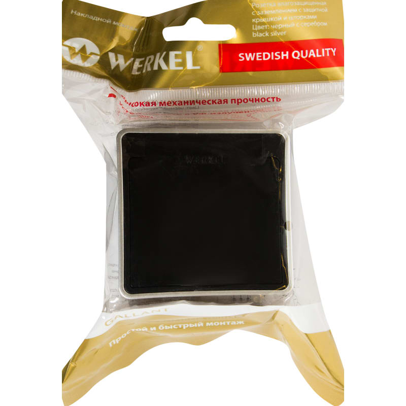 Розетка накладная влагозащищённая Werkel Gallant с заземлением, с крышкой и шторками, IP44, цвет чёрный с серебром