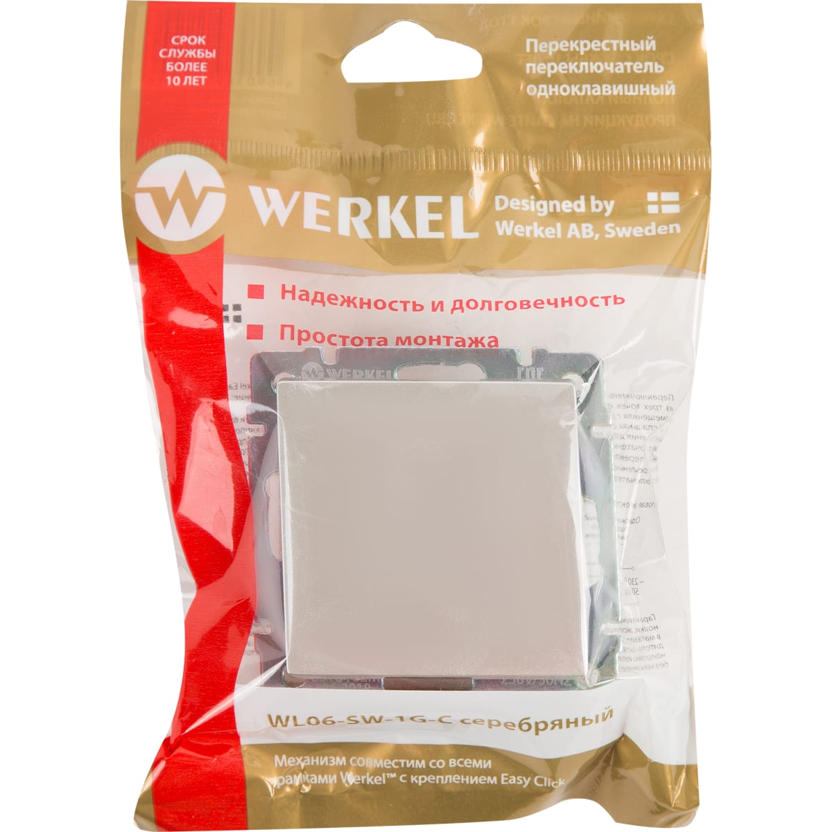Переключатель промежуточный встраиваемый Werkel 1 клавиша, цвет серебряный