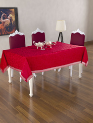 Скатерть DO&CO Скатерть DO&CO c гипюром 160x220 КДК_бордовый Полиэстер, 160x220 см, бордовый