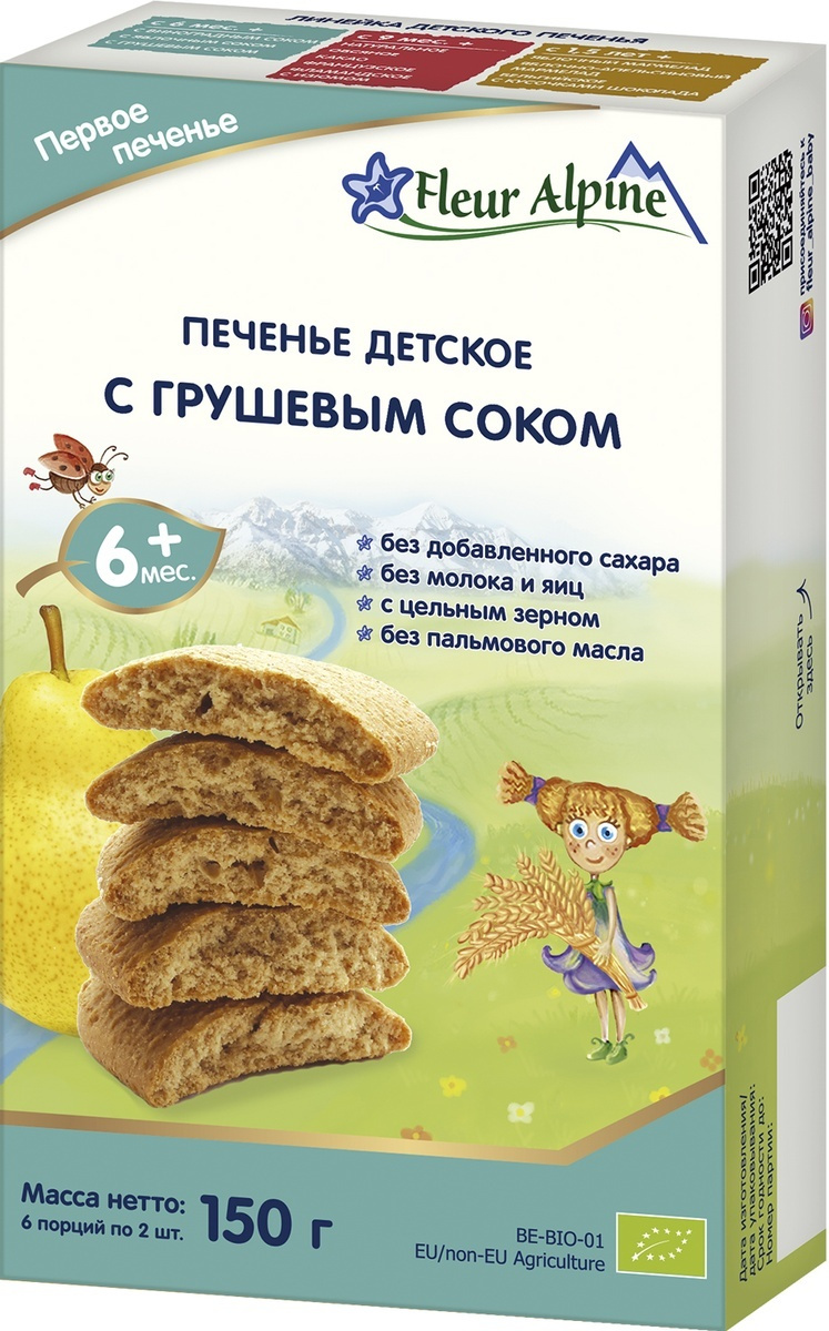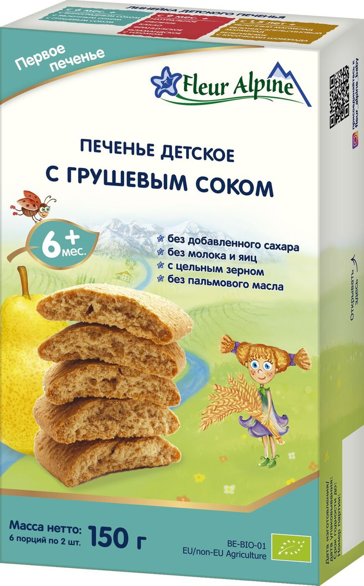 Печенье детское Fleur Alpine Первое с грушевым соком, с 6 месяцев, 150 г