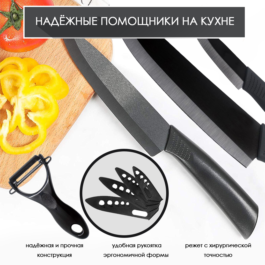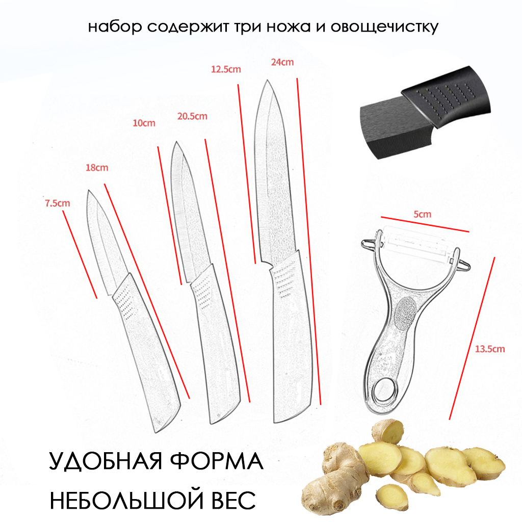- Состав набора 1 овощечистка, 3 ножа