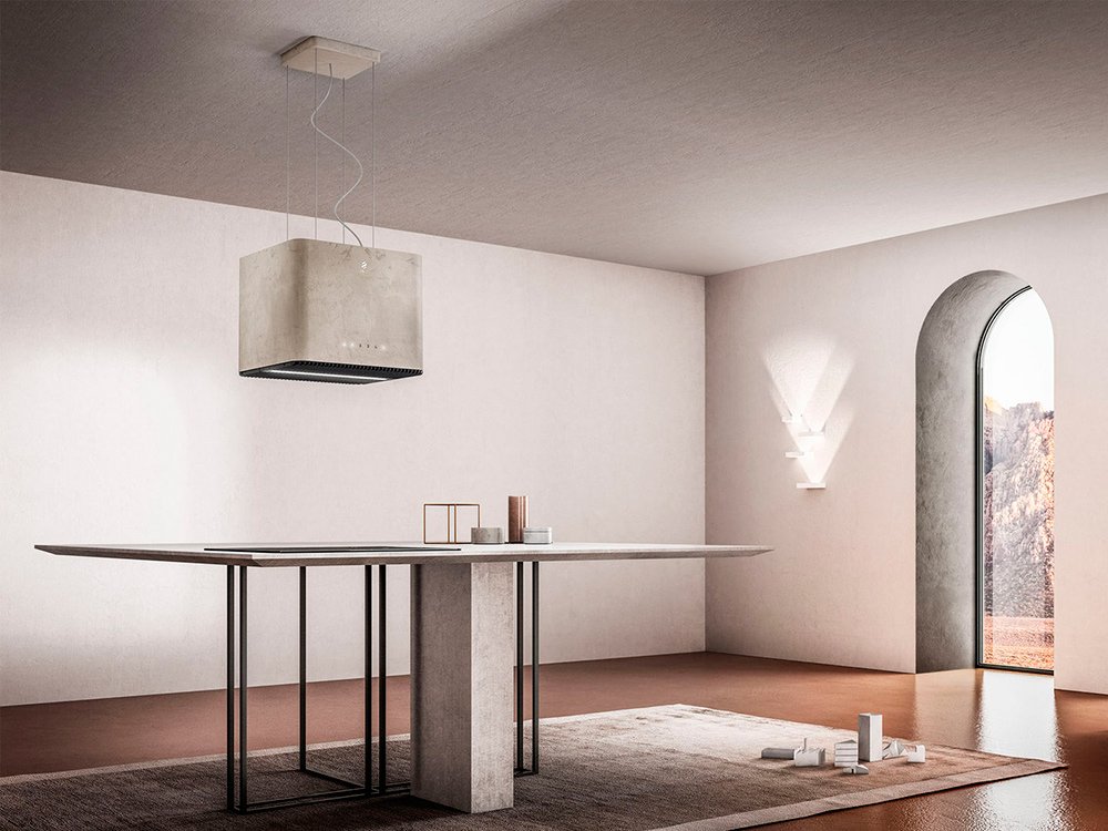 Островная, коробчатая кухонная вытяжка, ширина 42 см, тип очистки воздуха: рециркуляция, количество скоростей 3, макс производительность 1100 м3/ч, сенсорное управление, металлический жироулавливающий фильтр, угольный фильтр, макс уровень шума 60 дБ.