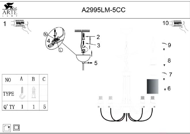Люстра Arte Lamp Ombra A2995LM-5CC