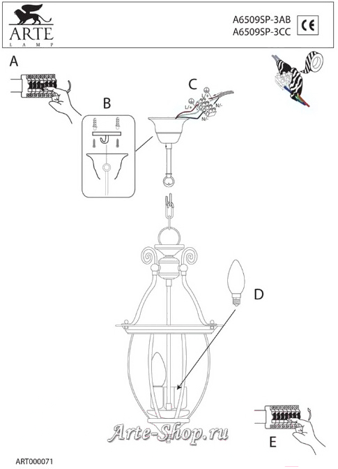 Люстра Arte Lamp Rimini A6509SP-3CC