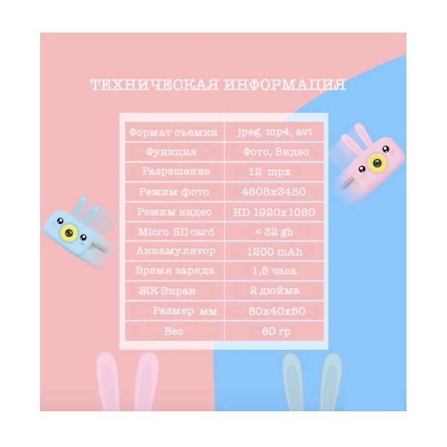 Детский цифровой фотоаппарат Зайчик, желтый