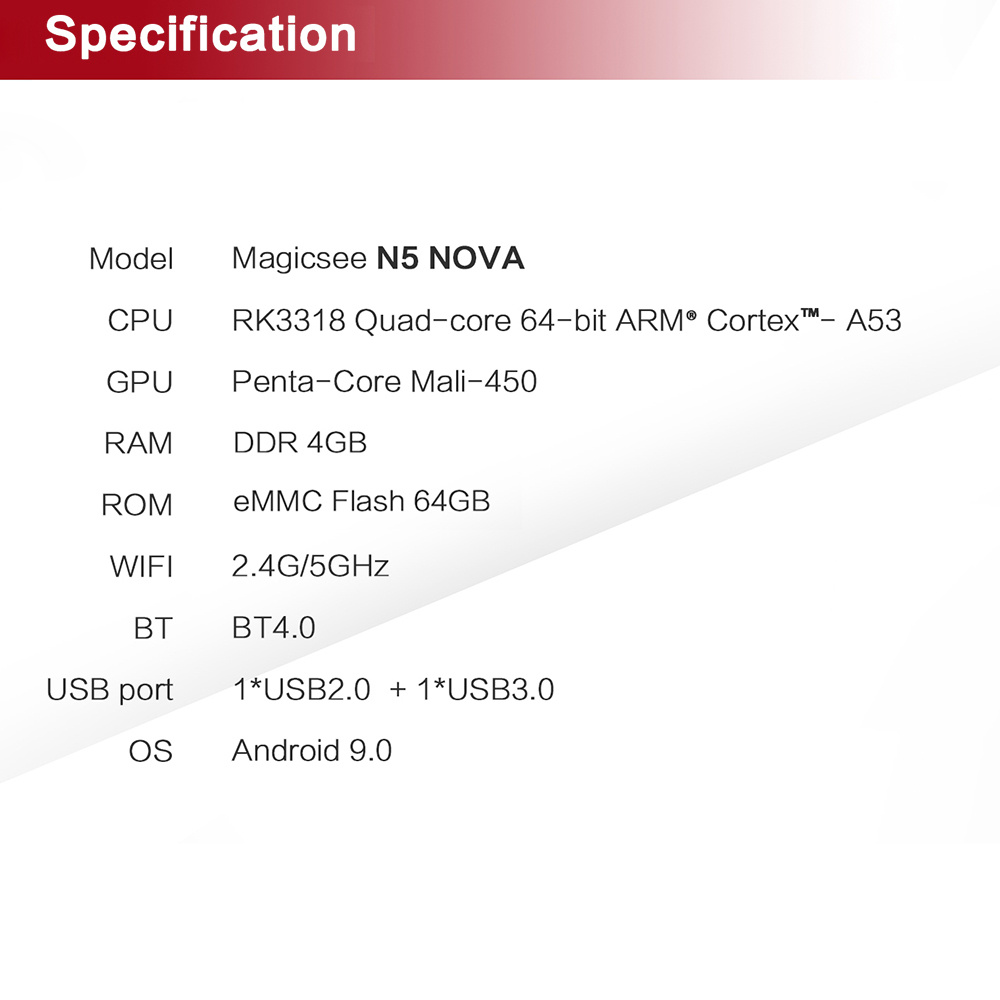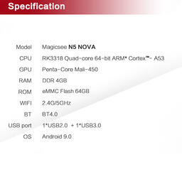 Magicsee N5 NOVA Смарт Android 9.0 ТВ-бокс Медиаплеер RK3318 Четырехъядерный процессор 64 бит 4K 4 ГБ / 64 ГБ