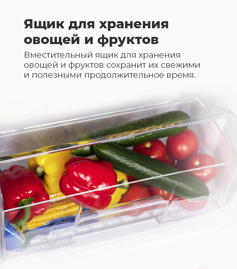 • В комплекте лоток для яиц (2 шт), ящик для овощей и фруктов, ванночка для льда