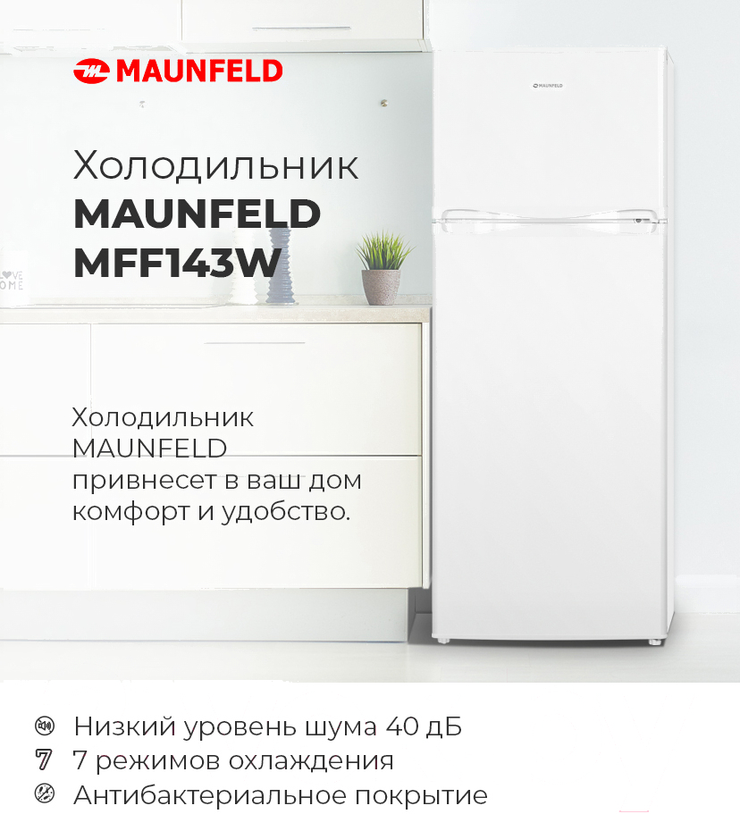 Холодильник с морозильником Maunfeld MFF 143W