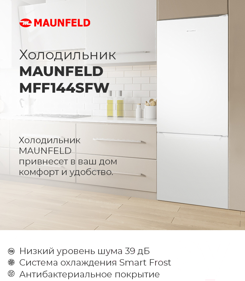 Холодильник с морозильником Maunfeld MFF 144SFW