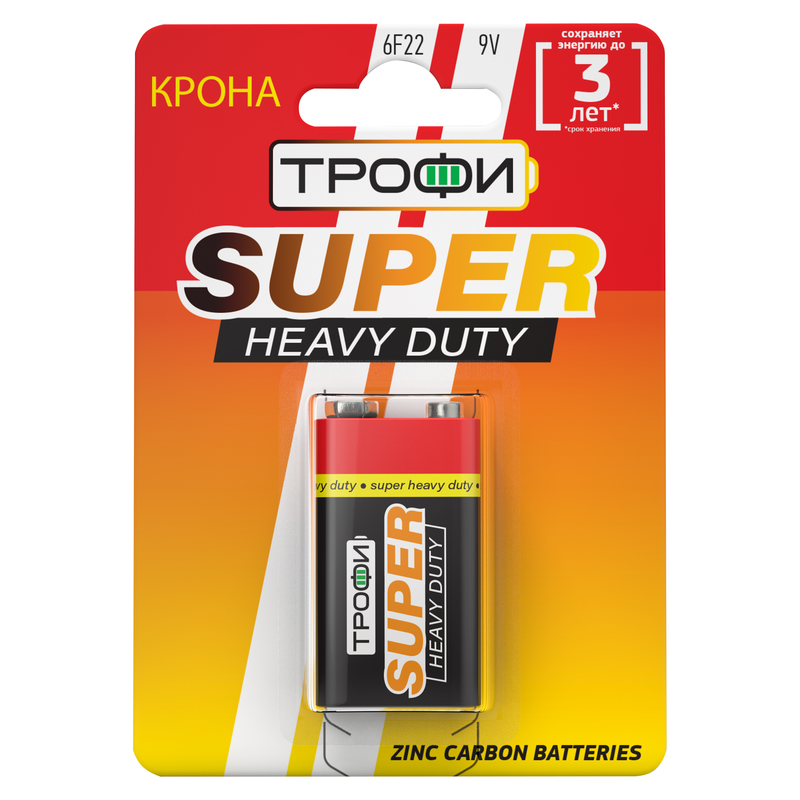 Солевые (цинковые) батарейки серии EXTRA, "крона"