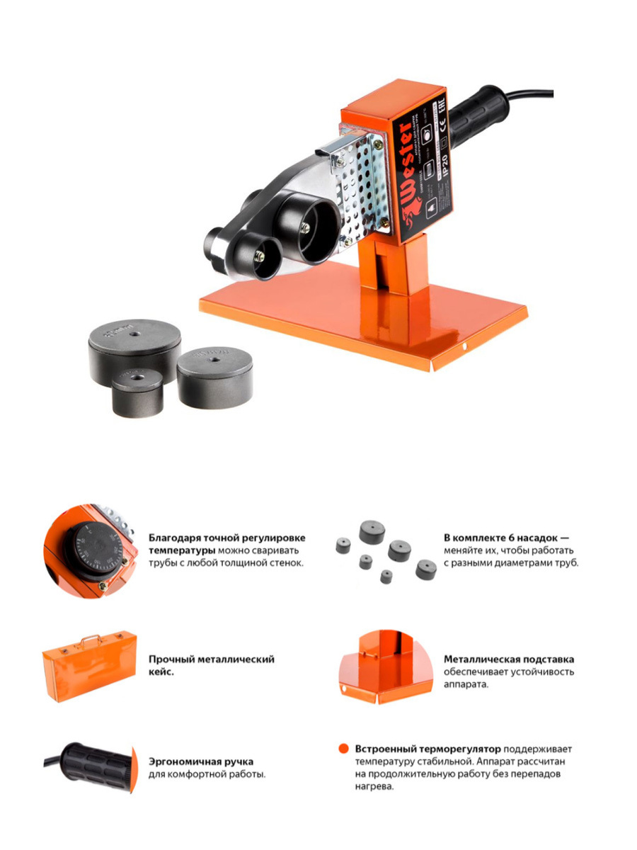 Аппарат для сварки ПП труб Wester "DWM1500LE", 1500 Вт