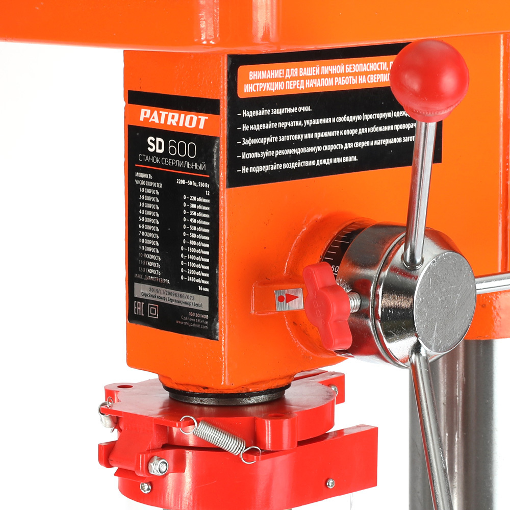 Станок сверлильный PATRIOT SD 600, Мощность, Вт: 550. Тиски в комплекте.
