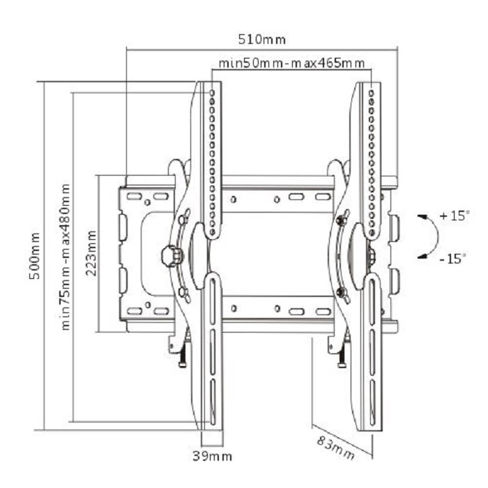 - Макс. угол наклона вниз 15°