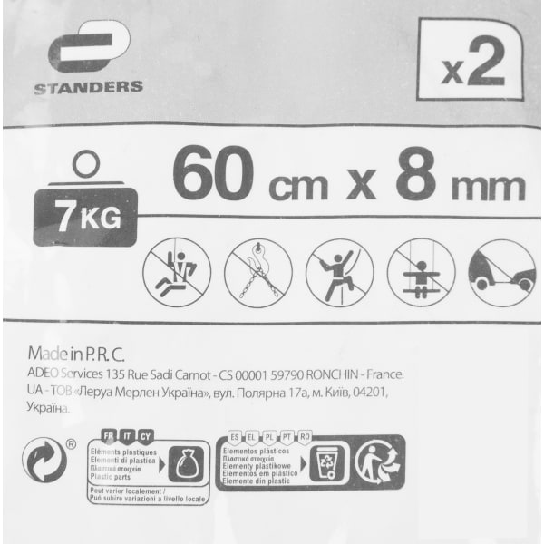 Набор эластичных стяжек с крюками Standers 8х600 мм, 2 шт.