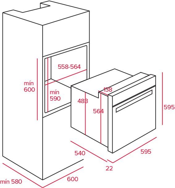 - Размеры для встраивания (ВхШхГ) 590x558x580 мм