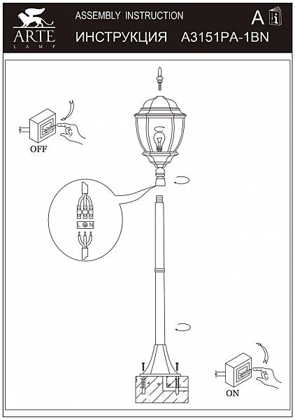 Столб фонарный уличный Arte Lamp A3151PA-1BN