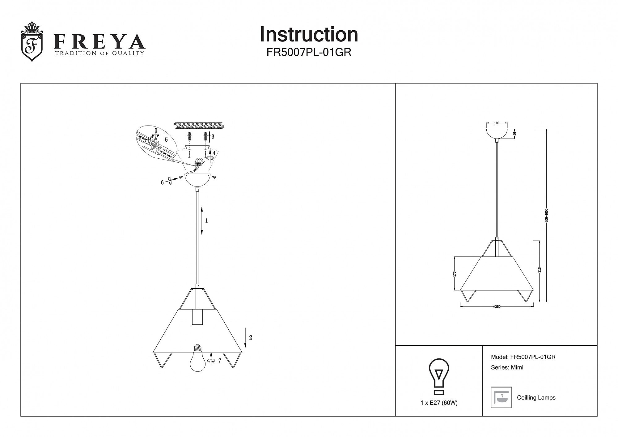 Светильник подвесной Mimi FR5007PL-01GR