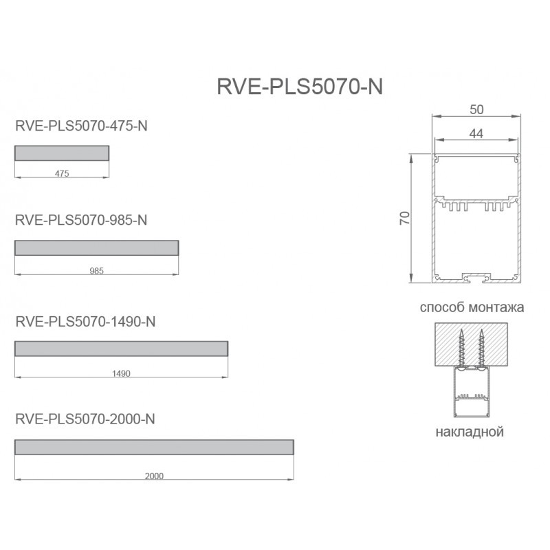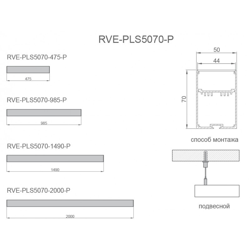 Светильник профильный подвесной/накладной RVE-PLS5070-1490-P 149 см 38 Вт 3000/4000/5000К цвет на заказ