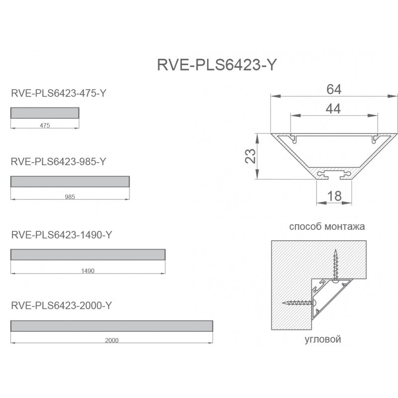 Светильник профильный угловой RVE-PLS6423-985-Y 98,5 см 25 Вт 3000/4000/5000К черный