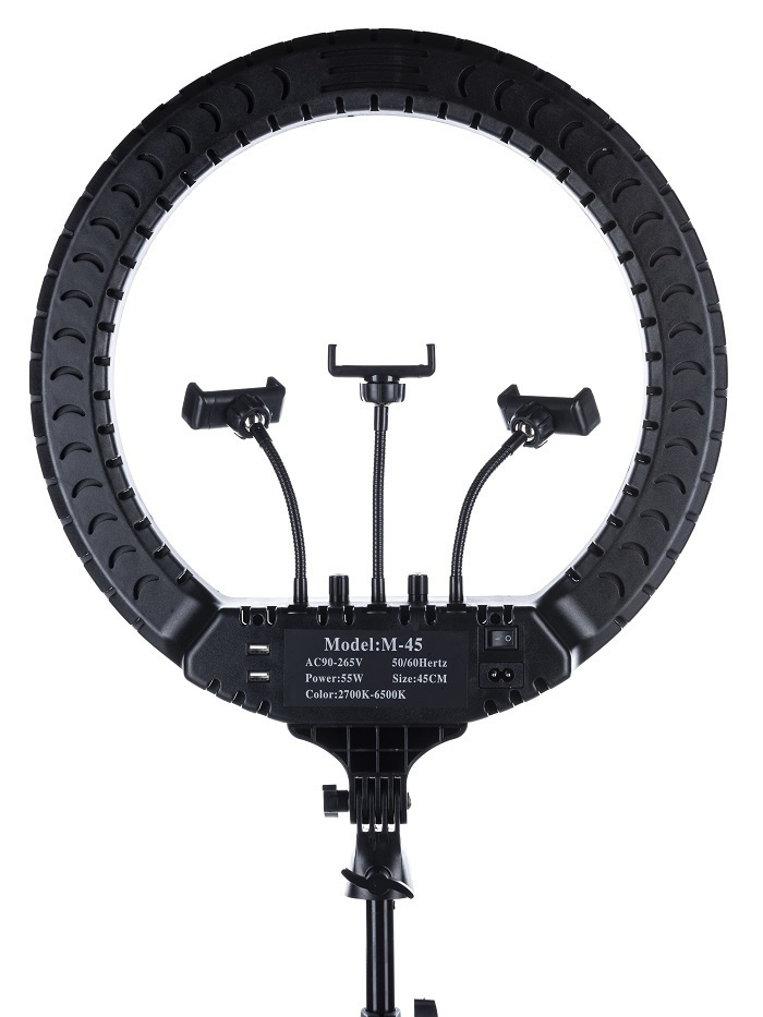 Кольцевая светодиодная лампа 45 см со штативом для профессиональной съемки с пультом для визажиста