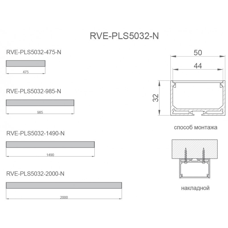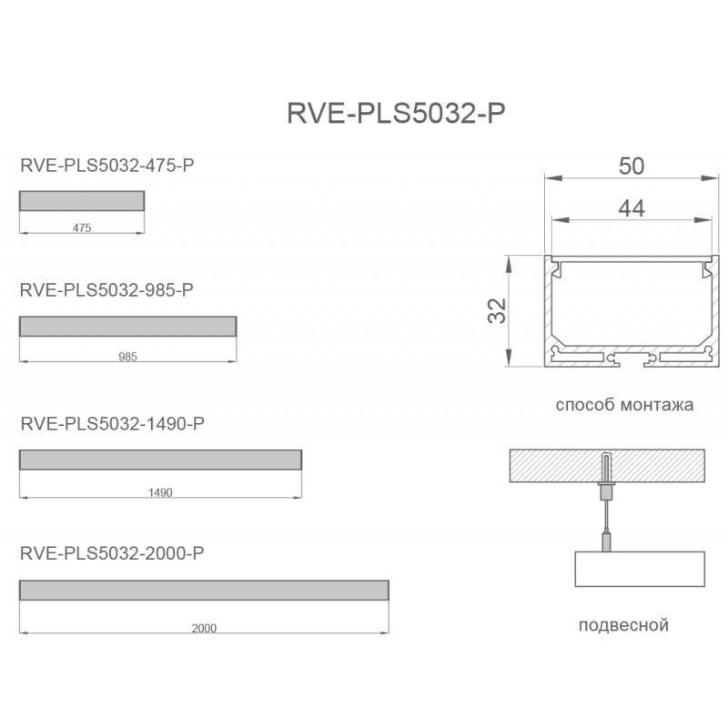 Светильник профильный подвесной/накладной RVE-PLS5032-2000-P 200 см 51 Вт 3000/4000/5000К цвет на заказ