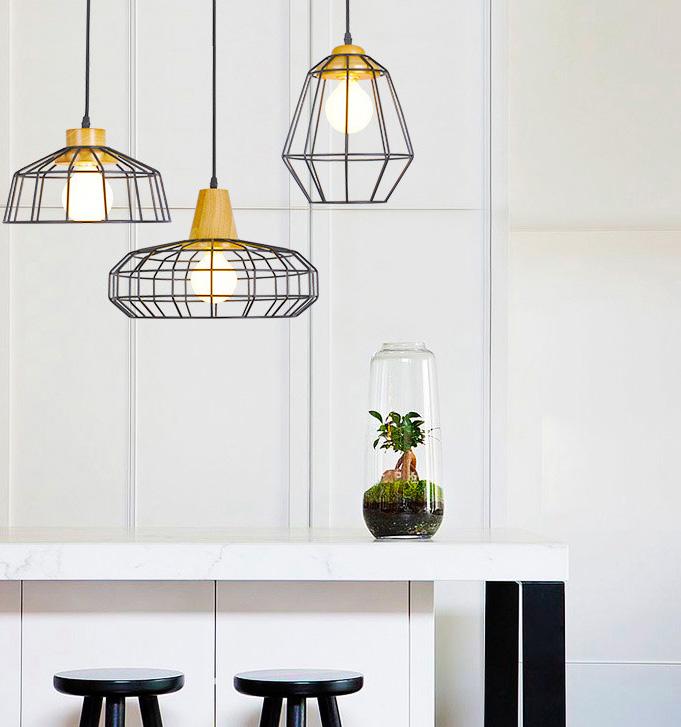 Светильник подвесной 3367 2-3367-1-BK+WOOD E27