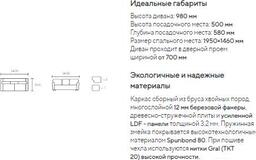 • Материал каркаса дерево (брус хвойных пород: влажность 8 – 10%), ДСП (класс эмиссии Е1), ДВП (толщиной 3,2 мм), фанера (многослойная березовая, 12 мм; класс эмиссии Е1), пластик (с проризиненным подпятником)