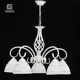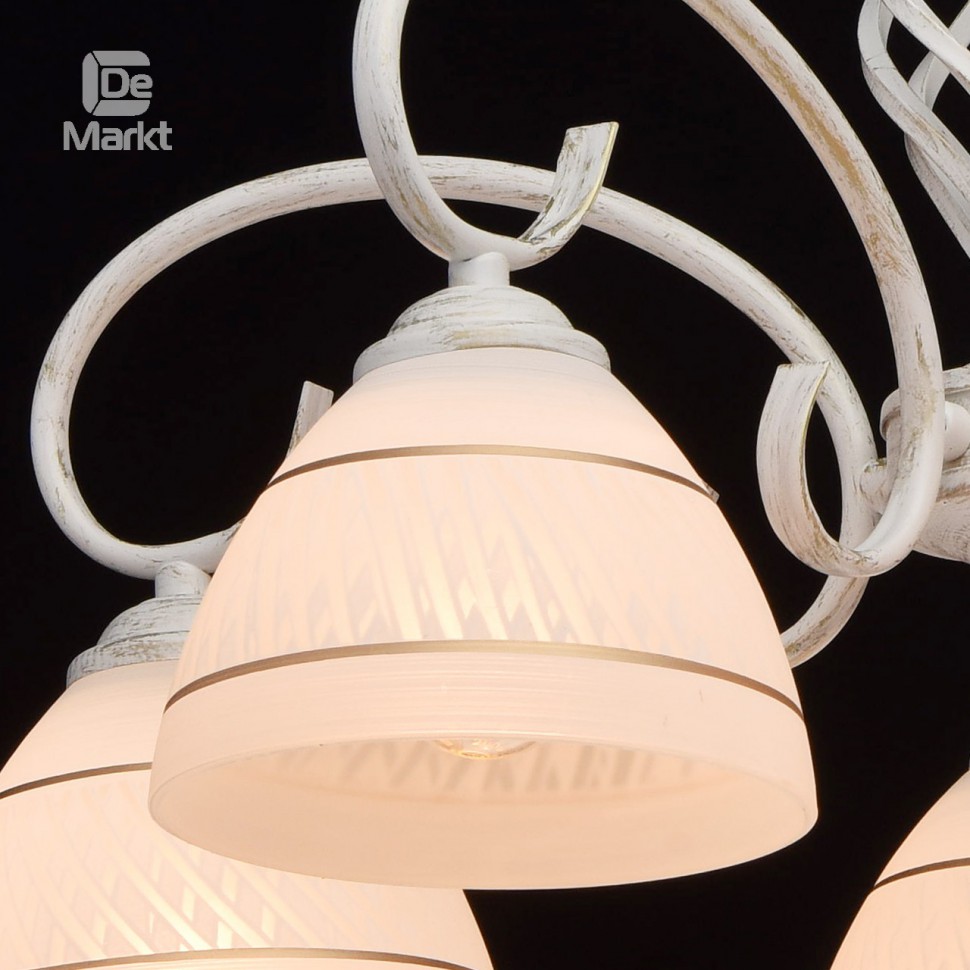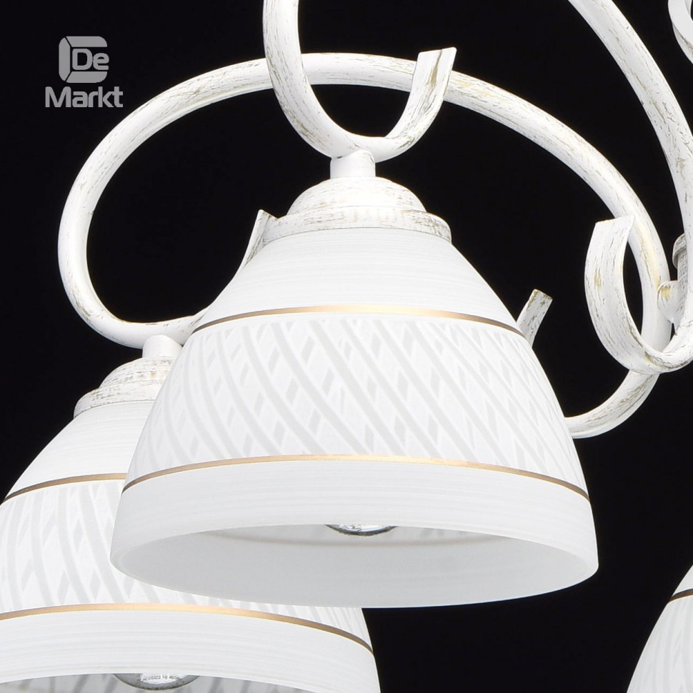ДополнительноМеталлическое основание, окрашенное в белый цвет с золотистой патиной . Плафоны из стекла, отлитого в форму, пескоструйная обработка с обеих сторон.