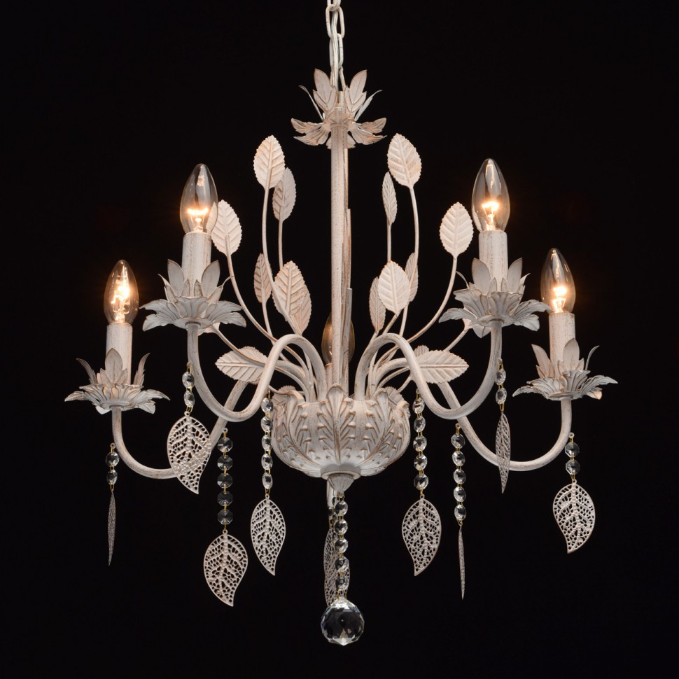 ДополнительноМеталлическое основание окрашено в цвет слоновой кости с золотой патиной. Декор: подвески в виде листьев, хрусталь.