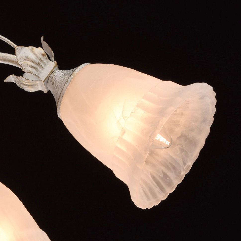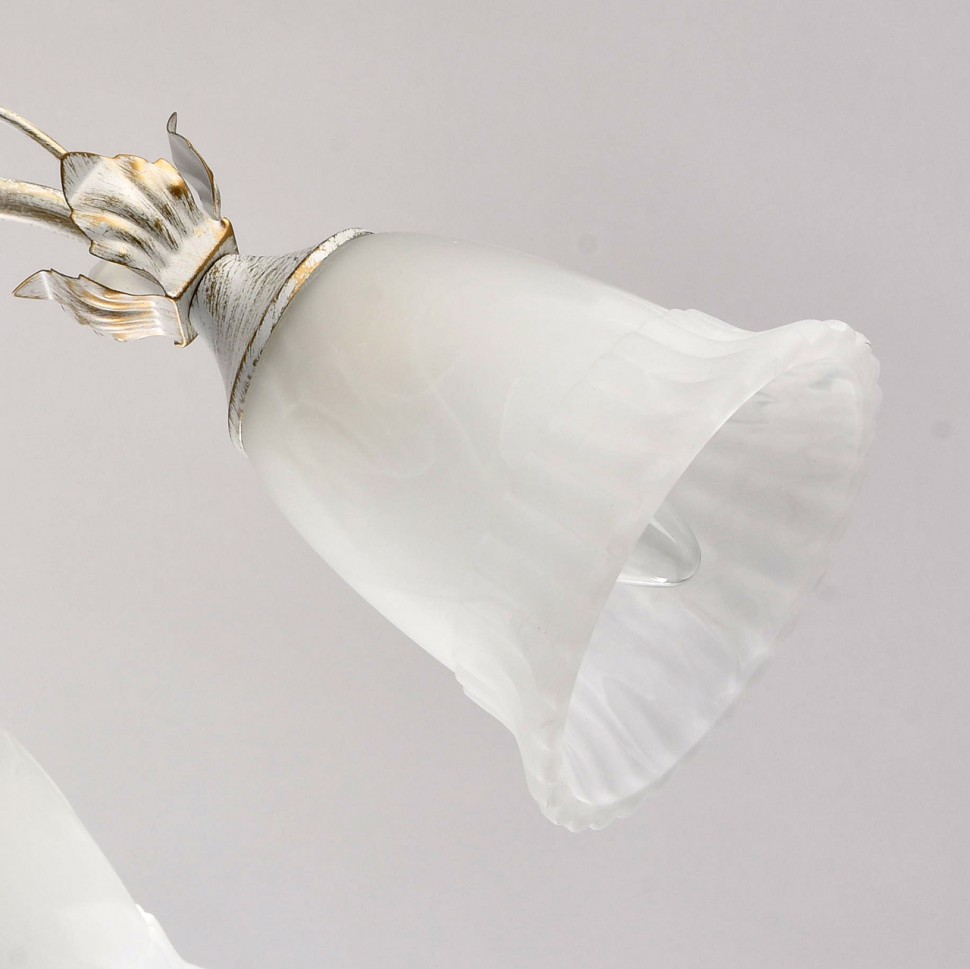 • Дополнительно Металлическое основание белого цвета с золотистой патиной. Плафоны - белое стекло.