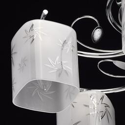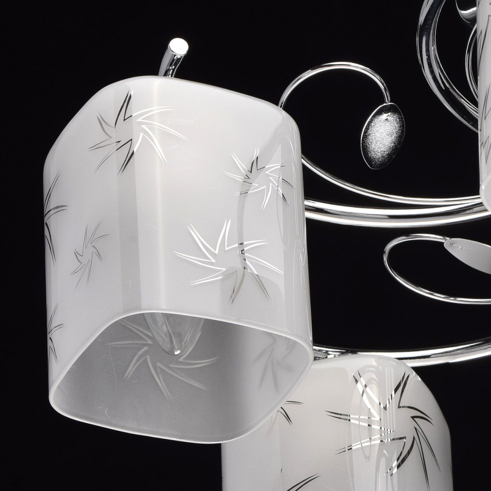 ДополнительноОснование из нержавеющей стали. Плафоны - матовое белое стекло с рисунком.