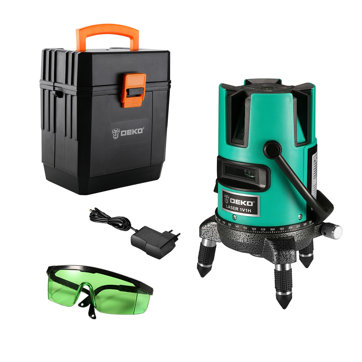 Уровень лазерный самовыравнивающийся DEKO DKLL02GB SET 3 в пластиковом кейсе (2 линии, зеленый луч)