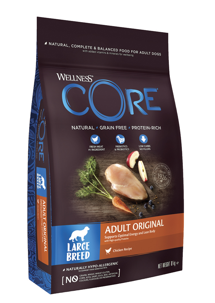 - Ингредиенты Состав: Курица 57% (свежая курица 25%, дегидрированная курица 18%, сухой куриный белок 5%, куриный соус 5%, куриный жир 4%), горох, сушеный картофель, льняное семя 3 %, свекольная пульпа 3%, лососевый жир 2%, морковь 0,5 %, яблоко 0,5%, сушеный корень цикория (источник фруктоолигосахаридов и инулина) 0,5%, экстракт дрожжей (источник маннанолигосахаридов) 0,5%, Д-глюкозамин гидрохлорид 400 мг/кг, хондроитина сульфат 300 мг/кг, брокколи, шпинат, томаты, клюква, черника 0,01%, юкка Шидигера.