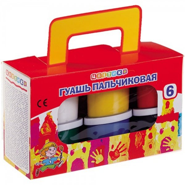 Набор пальчиковой гуаши для детского творчества и декоративно-оформительских работ, 6 цветов в банках по 80 мл.