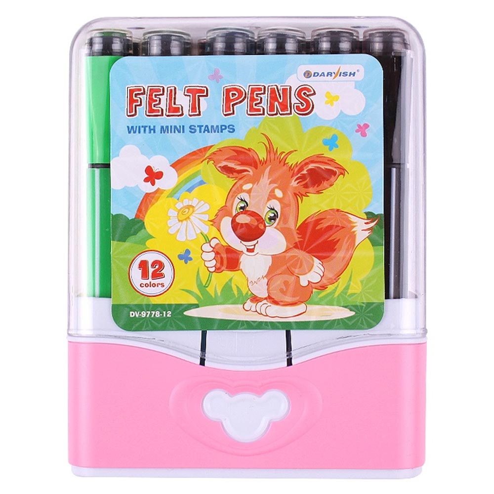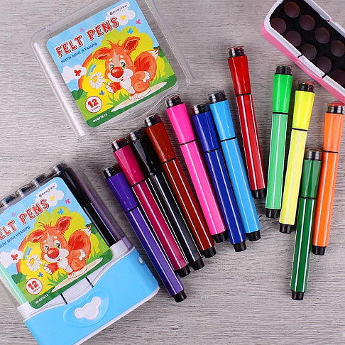 Фломастеры 12 цветов со штампиками на водной основе Darvish DV-9778-12