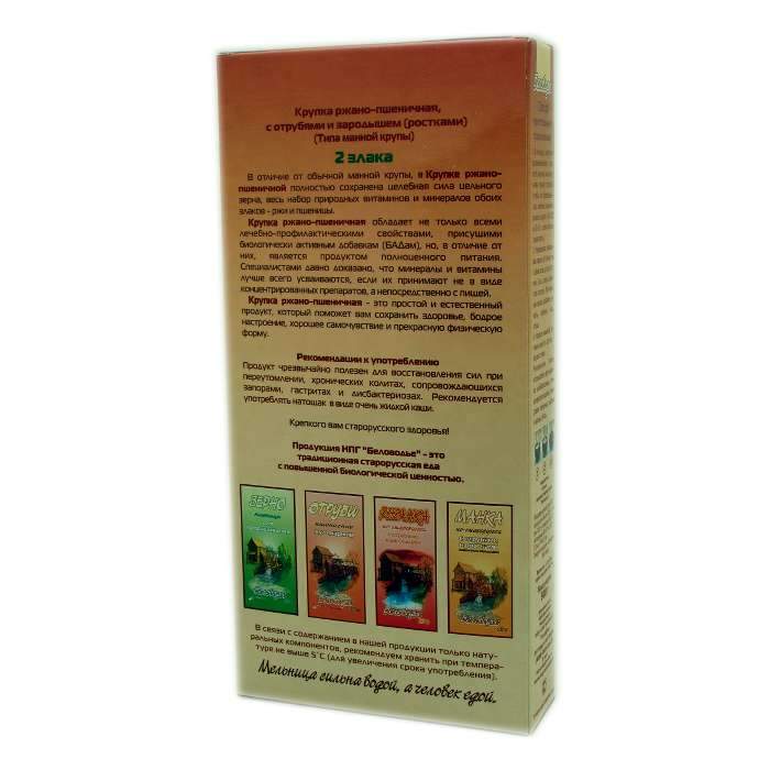 - Способ приготовления на несколько порций: 6 столовых ложек «Крупки ржано-пшеничной», 500 мл молока (или воды), сахар, соль, сливочное масло по вкусу. В 500 мл воды или молока всыпать 6 ст. ложек «Крупки ржано-пшеничной» и добавить по вкусу соль и сахар. Довести до кипения, непрерывно помешивая, добавить немного сливочного масла и затем дать настояться под крышкой 5-7 минут (вместе со сливочным маслом можно также добавить по вкусу фруктовый сироп, ягоды или мед). Крупка ржано-пшеничная, приготовленная на воде (а не на молоке!), наиболее полезна для улучшения пищеварения и для людей, страдающих лишним весом. Крупку можно также использовать для панировки рыбных, мясных, овощных котлет или биточков