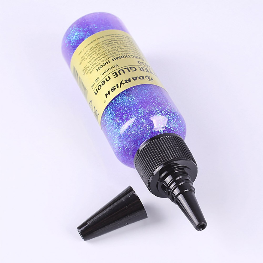 Гель с блестками (неон) 50мл. Для декоративных работ по бумаге, картону, пластику и легким тканям. Идеально подходит для хобби и творчества. Легко смывается водой.