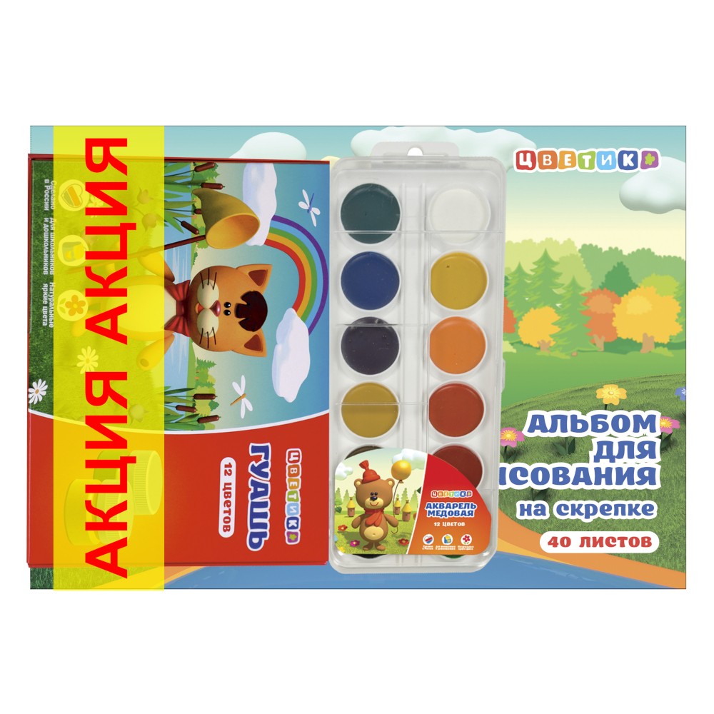 Набор Гуашь 12 цв., акварель 12 цв., альбом 40 л Цветик