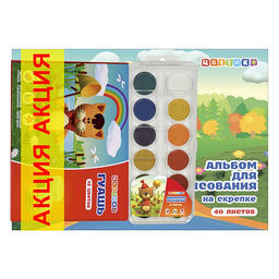Набор материалов для школьного творчества "Цветик". Состав: гуашь 12 цветов, акварель 12 цветов, альбом на скрепке 40 листов.