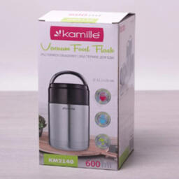Термос пищевой 600мл (11.1*20см) из нержавеющей стали с пластиковой крышкой Kamille