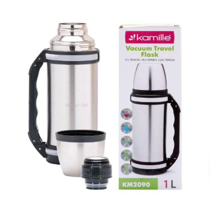 Термос 1500мл из нержавеющей стали с ручкой и ремешком Kamille