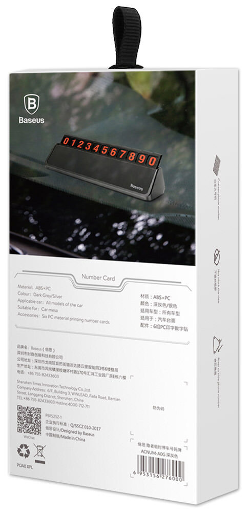 Автовизитка Baseus hermit Temporary Parking Number Card, серый