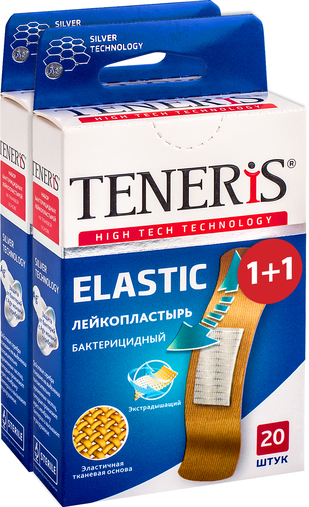 - Модель TENERIS ELASTIC Лейкопластырь бактерицидный с ионами серебра на тканевой основе 20+20 шт.