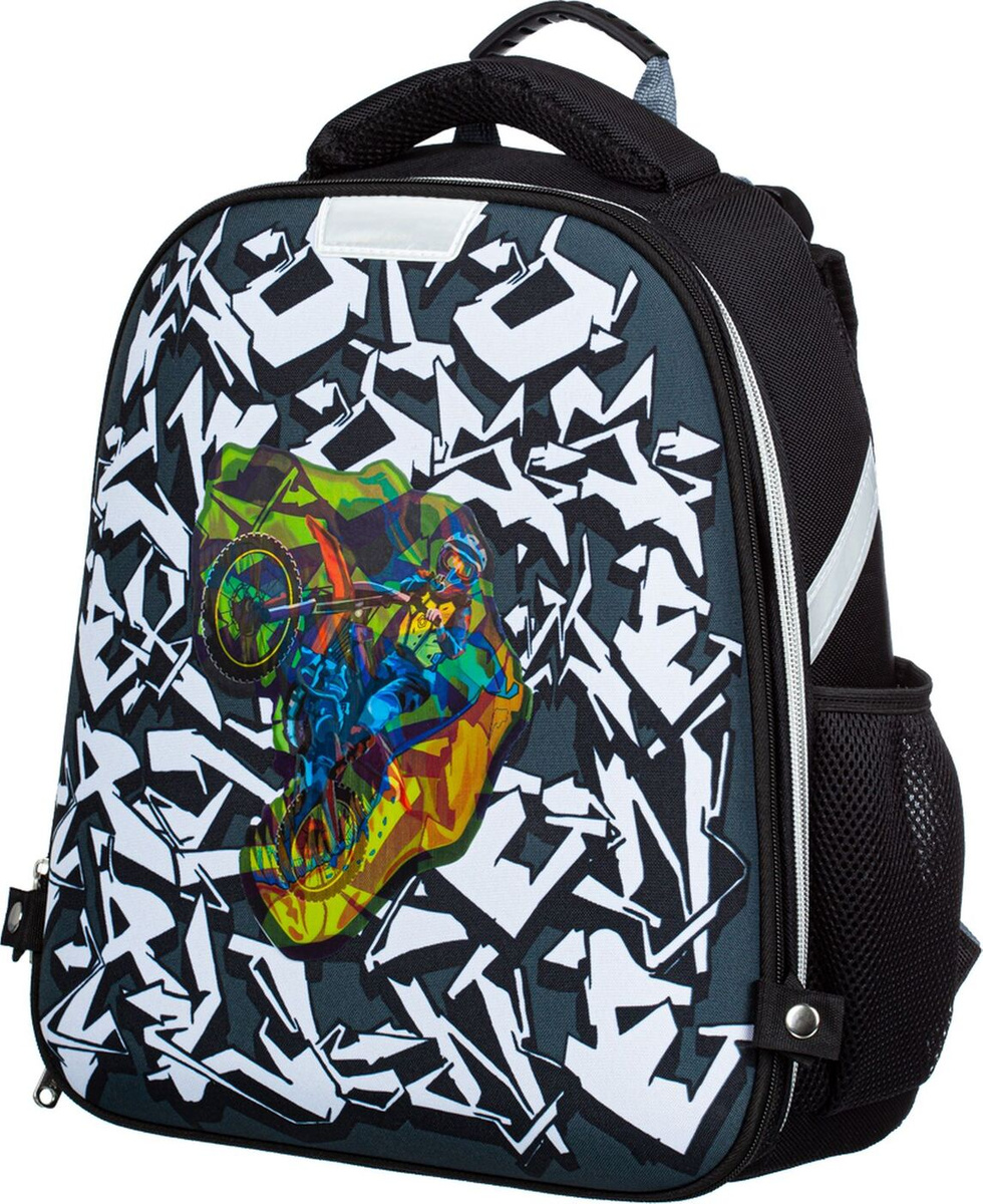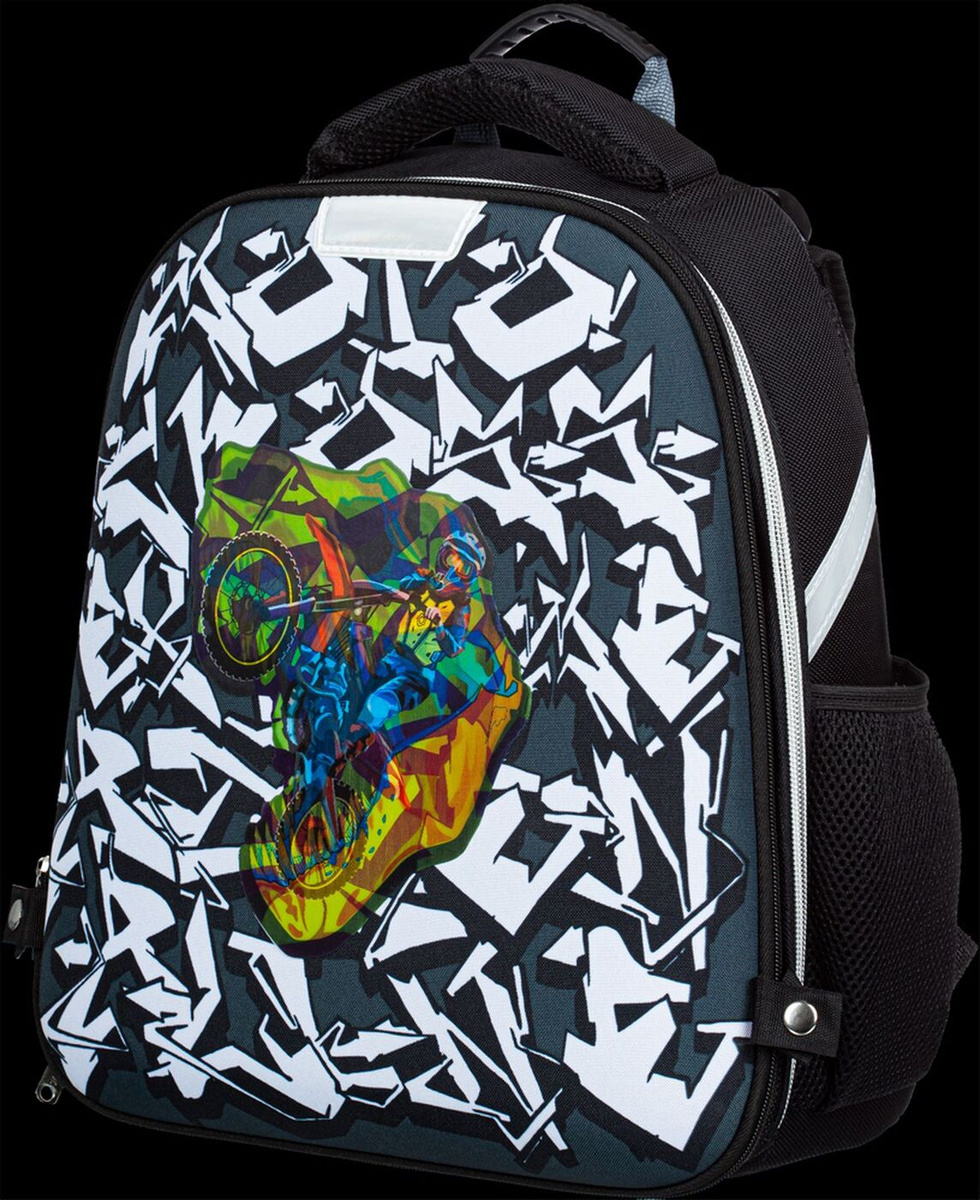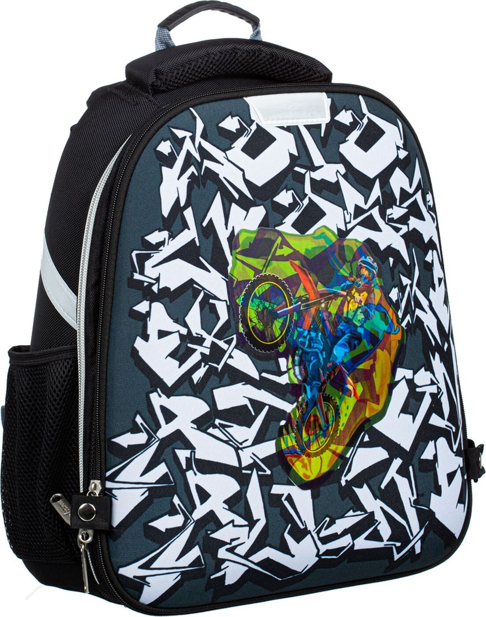 Ранец школьный №1 School Mix Moto Cross Динозавр, зеленый, 11 л