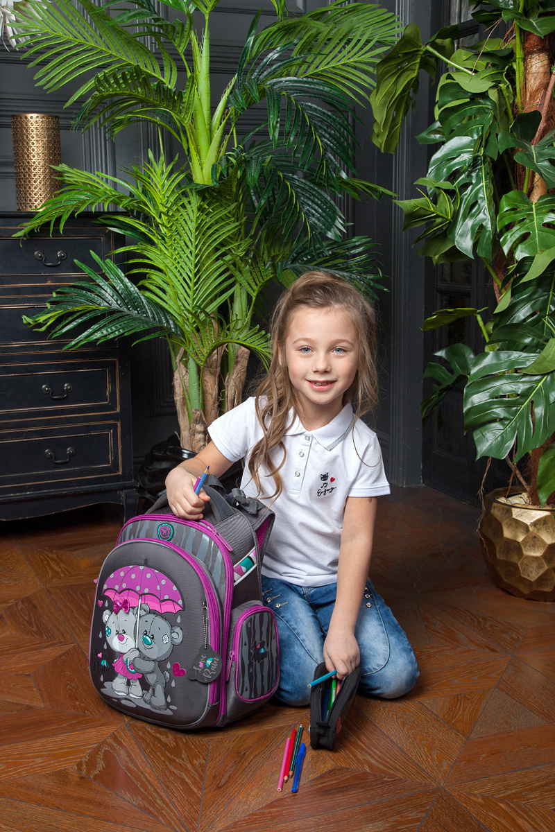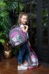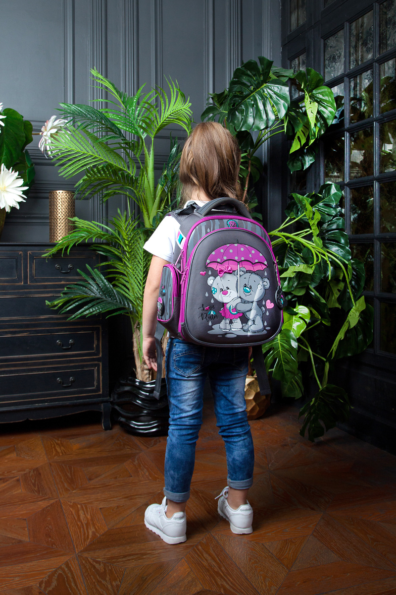 Школьный ранец с мешком для обуви Hummingbird Love Rain, серый