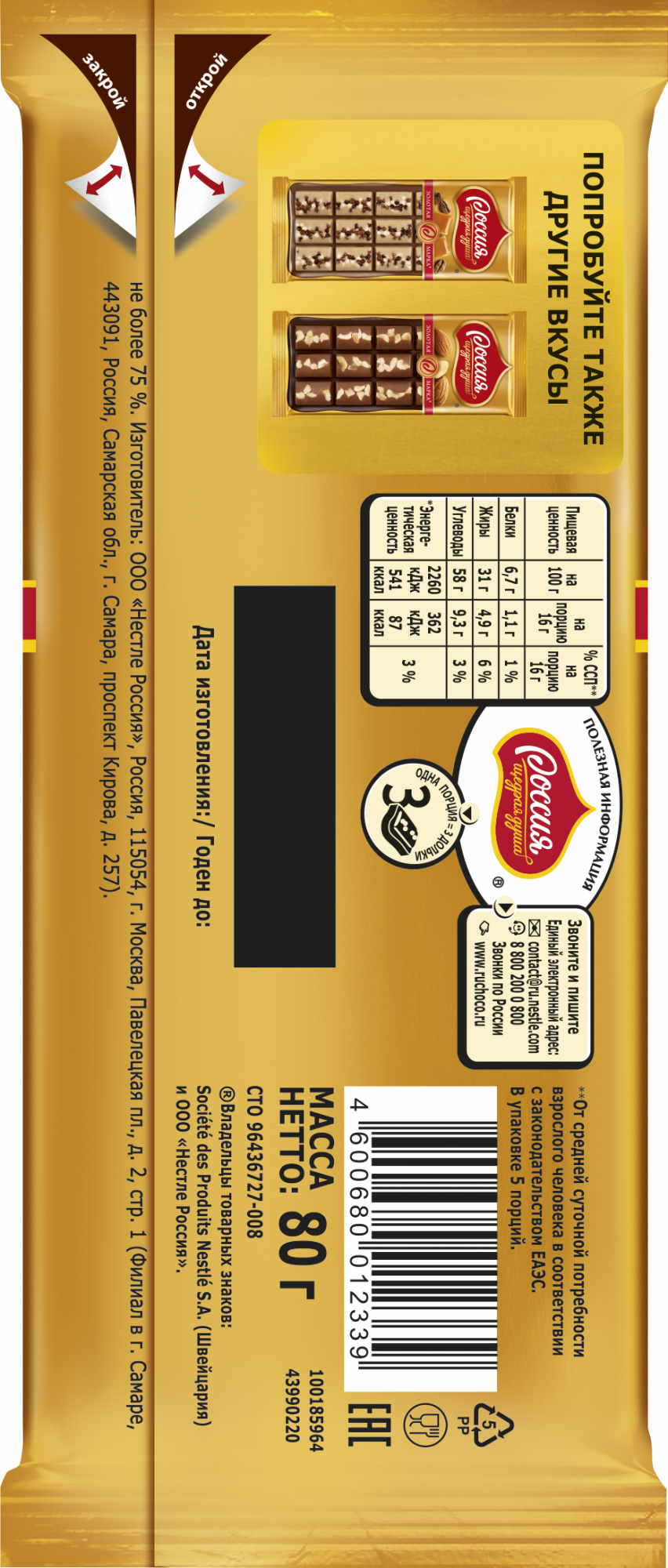 - Состав Состав: МОЛОЧНЫЙ ШОКОЛАД (сахар, масло какао, молоко сухое цельное, какао тертое, сыворотка молочная сухая, молочный жир, эмульгаторы (соевыйлецитин, Е476), ароматизатор натуральный), фундук дробленый (5,3 %), ароматизатор натуральный.Продукт может содержать арахис, другие орехи, яичный белок, глютен и кунжут.