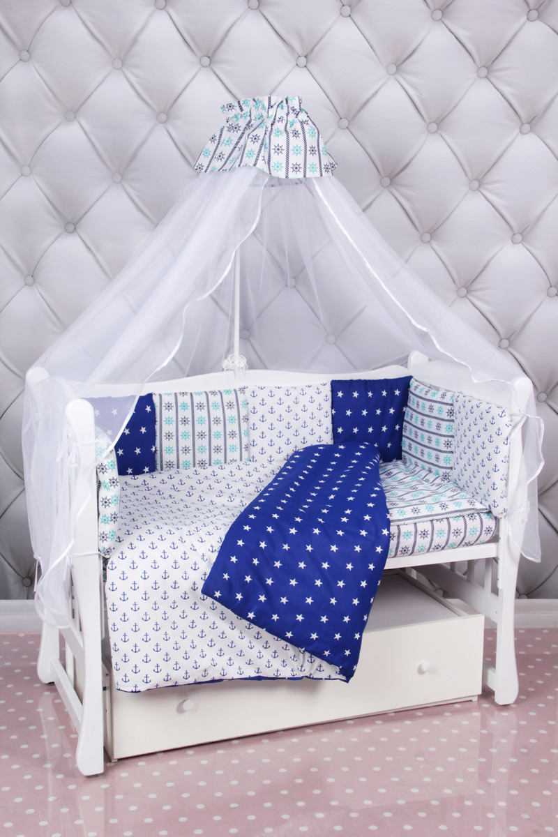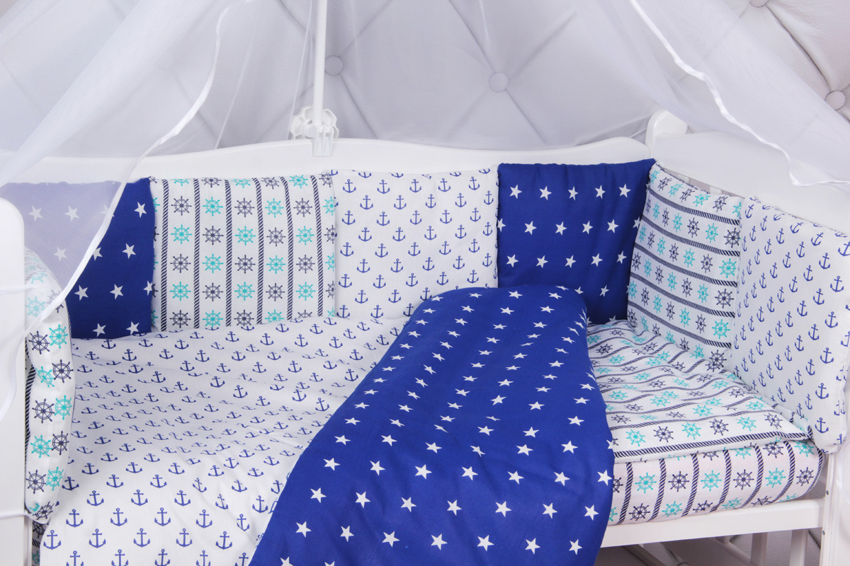 Комплект постельного белья детский AmaroBaby Бриз Premium, бязь, синий, белый, 18 предметов