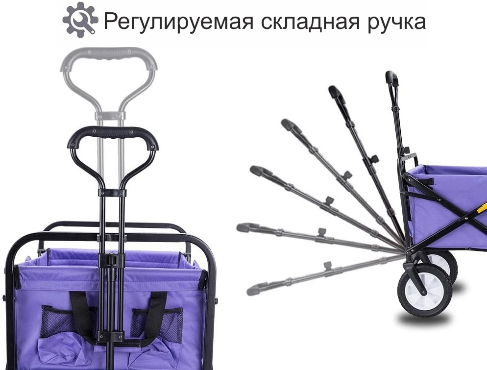 Тележка складная Monkey Wheels MW-80P фиолетовая (четырёхколёсная, для кемпинга, отдыха на природе)