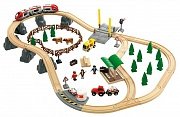 - Описание В состав набора деревянной железной дороги BRIO входит железнодорожное полотно со стрелками, пассажирский состав с вагонами, в которые можно сажать фигурки человечков, станция, переезд, пункт погрузки баллонов, трактор с прицепом, автобус, фигурки человечков, коров с загончиками, деревья и семафор. Восходящие секции рельсов и опоры в виде каменных глыб позволяют приподнять железнодорожное полотно на второй уровень. Набор деревянной железной дороги включает в себя 75 элементов.