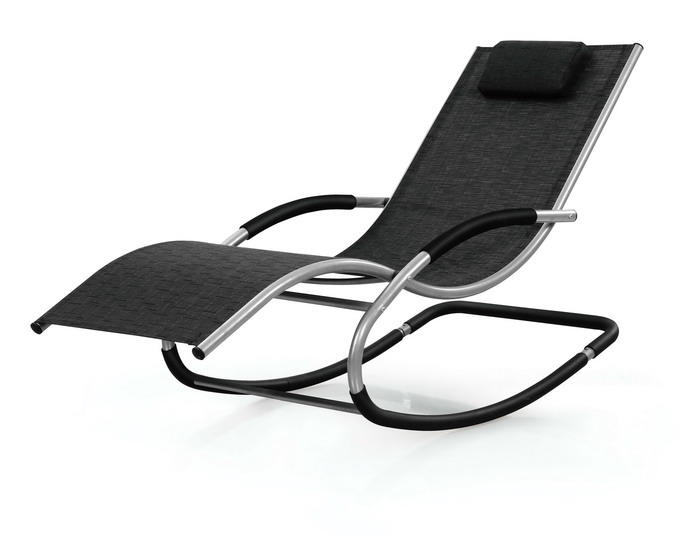 - Описание Оригинальный шезлонг черного цвета с конструкцией кресла-качалки. Лежак-кресло имеет также удобные подголовник и подлокотники с мягкими вставками, обеспечивающие дополнительный комфорт отдыхающим.